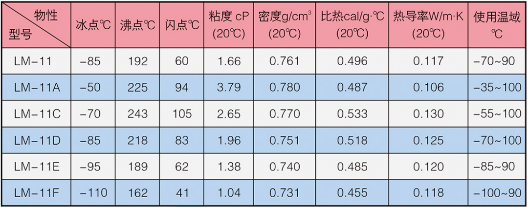 LM-11系列冰河冷媒由高級烷烴改性而成,外觀為淺色液體,不溶于水,低毒,低粘度,化學性質(zhì)穩(wěn)定,可燃。