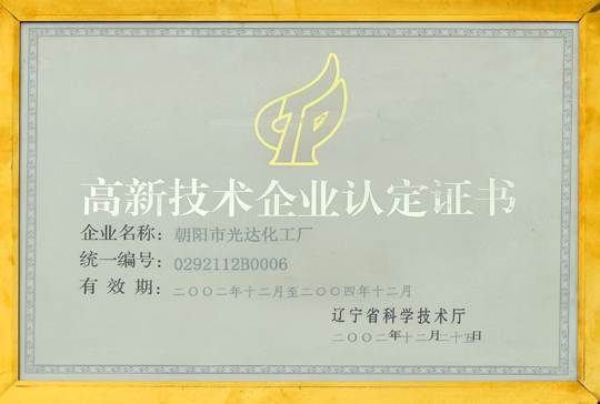 高新技術(shù)企業(yè)認(rèn)定證書(shū)2002