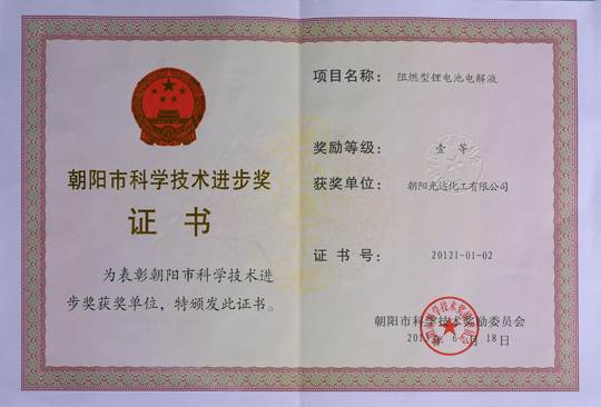 市科技進(jìn)步獎(jiǎng)電解液一等