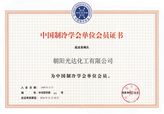 中國(guó)制冷學(xué)會(huì)單位會(huì)員證書(shū)